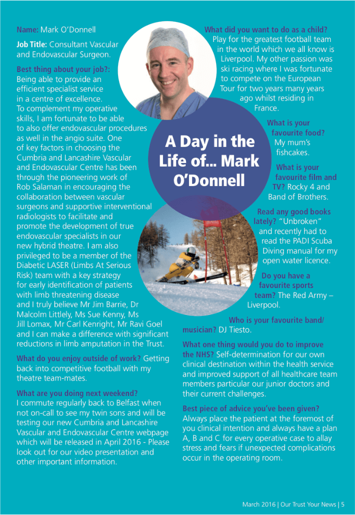 I was honoured to have featured on page 5 in “Our Trust – Your News – March 2016” –– “A Day in the Life of ….. Mark O’Donnell”.