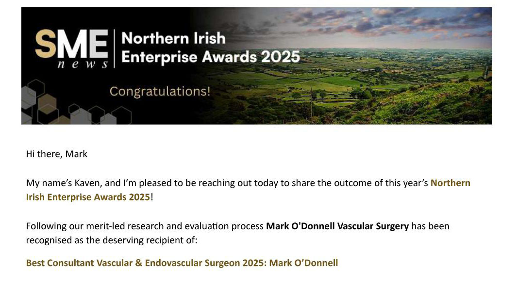 Professor Mark O'Donnell – Winner of Best Consultant Vascular and Endovascular Surgeon at the 3rd Northern Irish Enterprise Awards 2025