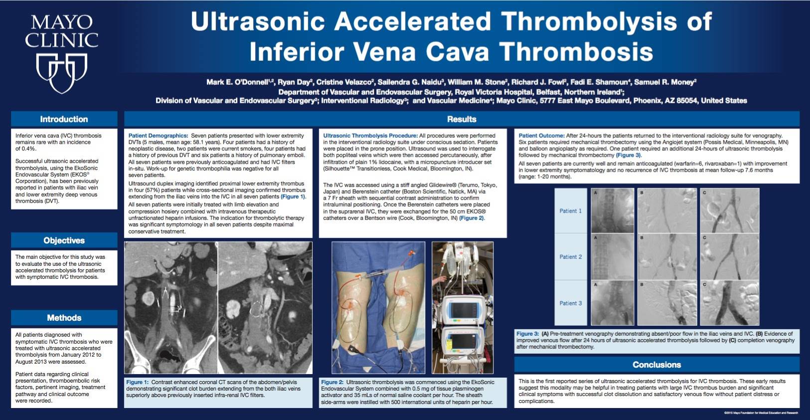 Ultrasonic Accelerated Thrombolysis of Inferior Vena Cava Thrombosis. Mark E. O’Donnell, Ryan Day, Cristine Velazco, Sailendra G. Naidu, William M. Stone, Richard J. Fowl, Fadi E. Shamoun, Samuel R. Money.